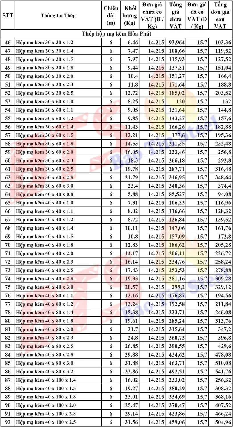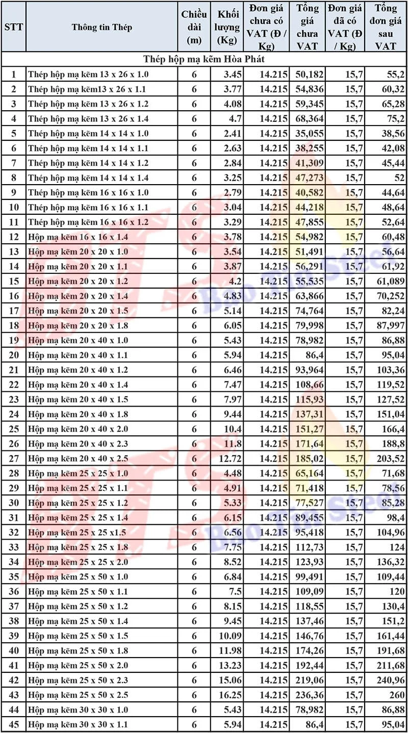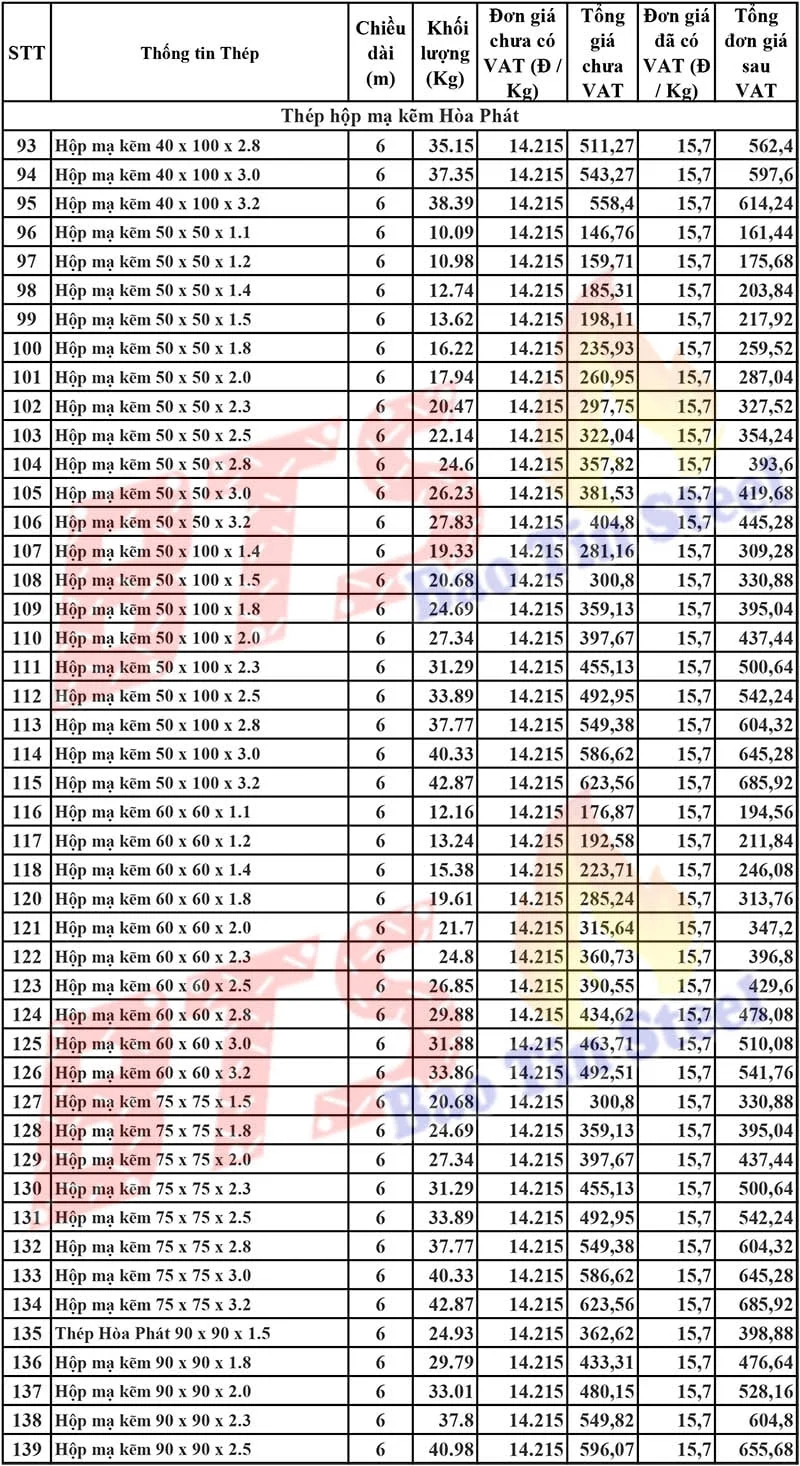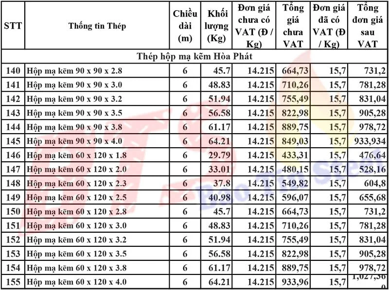 Below is the REFERENCE PRICE LIST of Hoa Phat square steel in HCM. Customers can refer to this to get a partial grasp of the steel situation. However, this price will change continuously, customers should contact 0932 059 176 to update the most accurate price list at the time of inquiry!